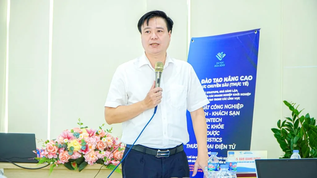 Sáng ngày 23/8/2025, trong khuôn khổ nhiệm vụ “Nâng cao năng lực chuyên sâu cho doanh nghiệp khởi nghiệp đổi mới sáng tạo (startups), nhà sáng lập, đồng sáng lập của các doanh nghiệp khởi nghiệp đổi mới sáng tạo (startup founders, cofounders)”, mã số 844.NV1.ĐHHB.01-25, Trường Đại học Hòa Bình (ĐHHB) đã tổ chức Lễ Khai giảng khóa đào tạo nâng cao năng lực chuyên sâu (thực tế) cho các startups, nhà sáng lập, đồng sáng lập của các doanh nghiệp khởi nghiệp đổi mới sáng tạo trong các lĩnh vực mỹ thuật công nghiệp, du lịch – khách sạn, fintech, sức khỏe, y dược, logistics, thương mại điện tử.