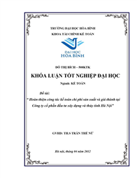 Hoàn thiện công tác kế toán chi phí sản xuất và giá thành tại Công ty cổ phần đầu tư xây dựng và thủy tinh Hà Nội / ThS. Trần Thế Nữ hướng dẫn