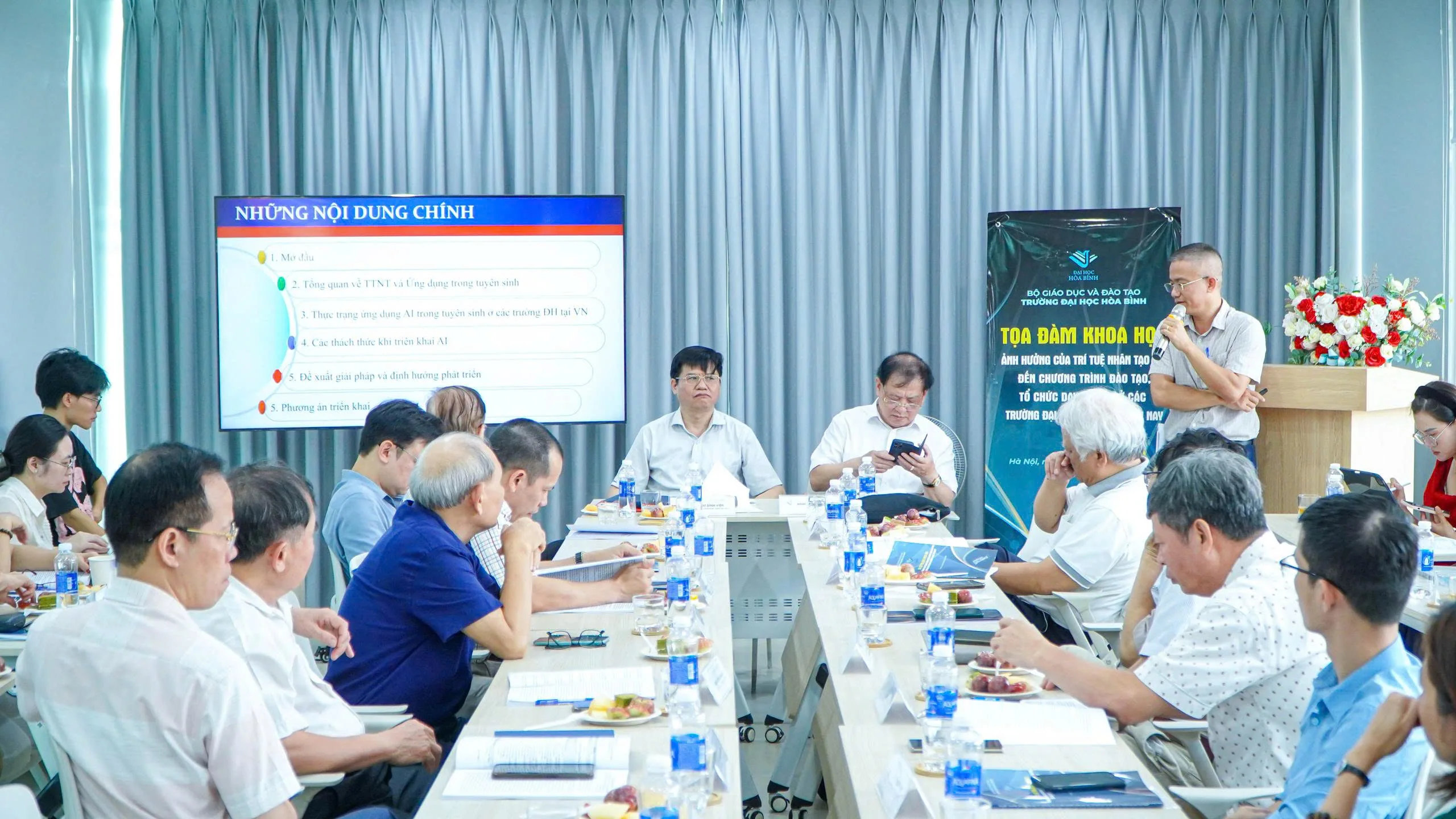 Nhằm tạo diễn đàn học thuật để các nhà quản lý, nhà giáo, chuyên gia, nhà nghiên cứucác doanh nghiệp công nghệ, học viên và sinh viên cùng nhau trao đổi, chia sẻ những kết quả nghiên cứu, mô hình ứng dụng thực tiễn, cũng như thảo luận, đề xuất các giải pháp phù hợp để khai thác hiệu quả những thành tựu của AI, đồng thời, khắc phục những khó khăn, vướng mắc trong quá trình ứng dụng AI vào giáo dục, Trường Đại học Hòa Bình (ĐHHB) đã tổ chức Tọa đàm nh hưởng của trí tuệ nhân tạo (AI) đến chương trình đào tạo, tổ chức dạy và học ở các trường đại học Việt Nam vào sáng ngày 08/7/2025.
