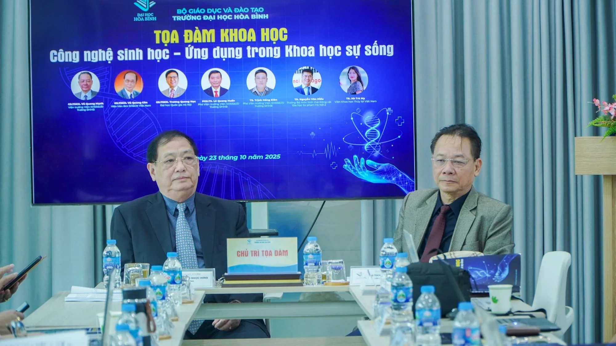 Nhằm tạo diễn đàn học thuật để các chuyên gia, nhà khoa học, giảng viên các trường đại học, viện nghiên cứu, học viện trao đổi, chia sẻ về một số nghiên cứu thực tiễn, qua đó, tạo không gian kết nối các ý tưởng giao thoa để hình thành những hướng hợp tác mới giữa Nghiên cứu – Đào tạo – Ứng dụng, hướng tới mục tiêu thúc đẩy các đề xuất mang tính chiến lược trong phát triển và ứng dụng công nghệ sinh học, góp phần hiện thực hóa định hướng đổi mới sáng tạo trong đào tạo và ứng dụng công nghệ sinh học trong khoa học sự sống, Trường Đại học Hòa Bình (ĐHHB) đã tổ chức Tọa đàm “Công nghệ sinh học – Ứng dụng trong Khoa học sự sống” vào sáng ngày 23/10/2025.