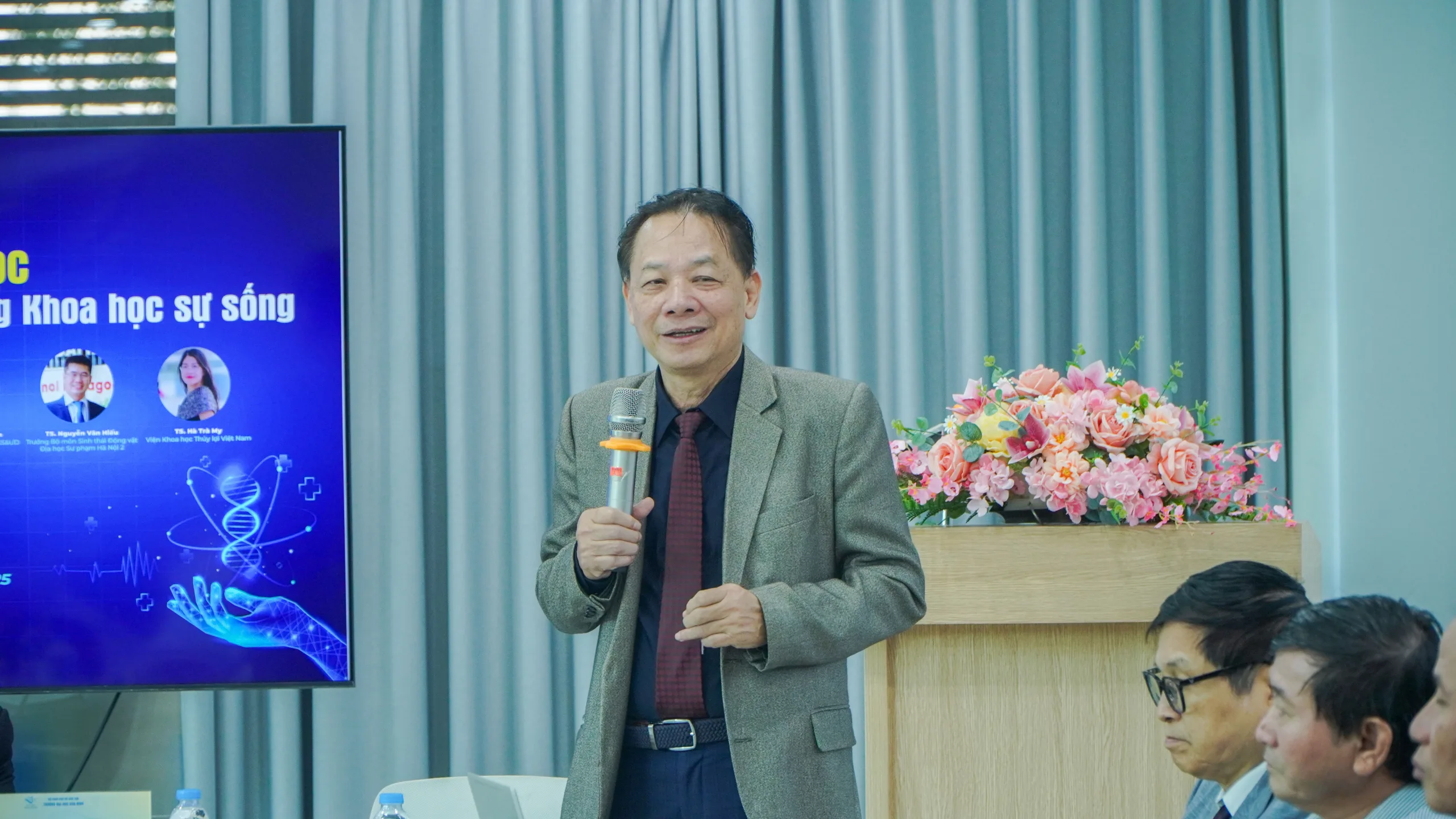 Phát biểu khai mạc Tọa đàm khoa học, NGND.PGS.TS. Tô Ngọc Hưng khẳng định khoa học công nghệ sinh học không còn là phạm trù nghiên cứu thuần túy, mà đã trở thành động lực quan trọng cho đổi mới sáng tạo trong y dược học, nông nghiệp, môi trường và kinh tế xanh. Những thành tựu như liệu pháp tế bào CAR-T, vaccine mRNA, chỉnh sửa gene CRISPR, hay nông nghiệp vi sinh tuần hoàn đã minh chứng cho sức mạnh của khoa học công nghệ sinh học trong việc cải thiện chất lượng cuộc sống và hướng tới phát triển bền vững. Tại Việt Nam, công nghệ sinh học được Đảng và Nhà nước xác định là một trong những lĩnh vực khoa học công nghệ ưu tiên hàng đầu, thể hiện qua Nghị quyết số 57-NQ/TW ngày 22/12/2024 về đột phá phát triển khoa học, công nghệ, đổi mới sáng tạo và chuyển đổi số quốc gia, Nghị quyết số 71-NQ/TW ngày 22/8/2025 về đột phá phát triển giáo dục và đào tạo, Nghị quyết số 72-NQ/TW ngày 09/9/2025 về chăm sóc và nâng cao sức khỏe nhân dân. Những định hướng này tạo nền tảng lý luận vững chắc cho hoạt động nghiên cứu, đào tạo và hợp tác ứng dụng công nghệ sinh học tại các cơ sở khoa học trong nước. Vì vậy, Tọa đàm “Công nghệ sinh học – Ứng dụng trong Khoa học sự sống” sẽ góp phần định hướng nghiên cứu, đào tạo và phát triển nguồn nhân lực công nghệ sinh học tại Việt Nam nói chung và tại Trường ĐHHB nói riêng.